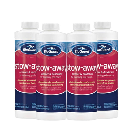 A pool cover that is stored without being properly cleaned can lead to staining and premature deterioration. BioGuard Stow Away effectively removes dirt and debris and deodorizes many types of pool and solar covers. Use of this product may extend the life of any cover.