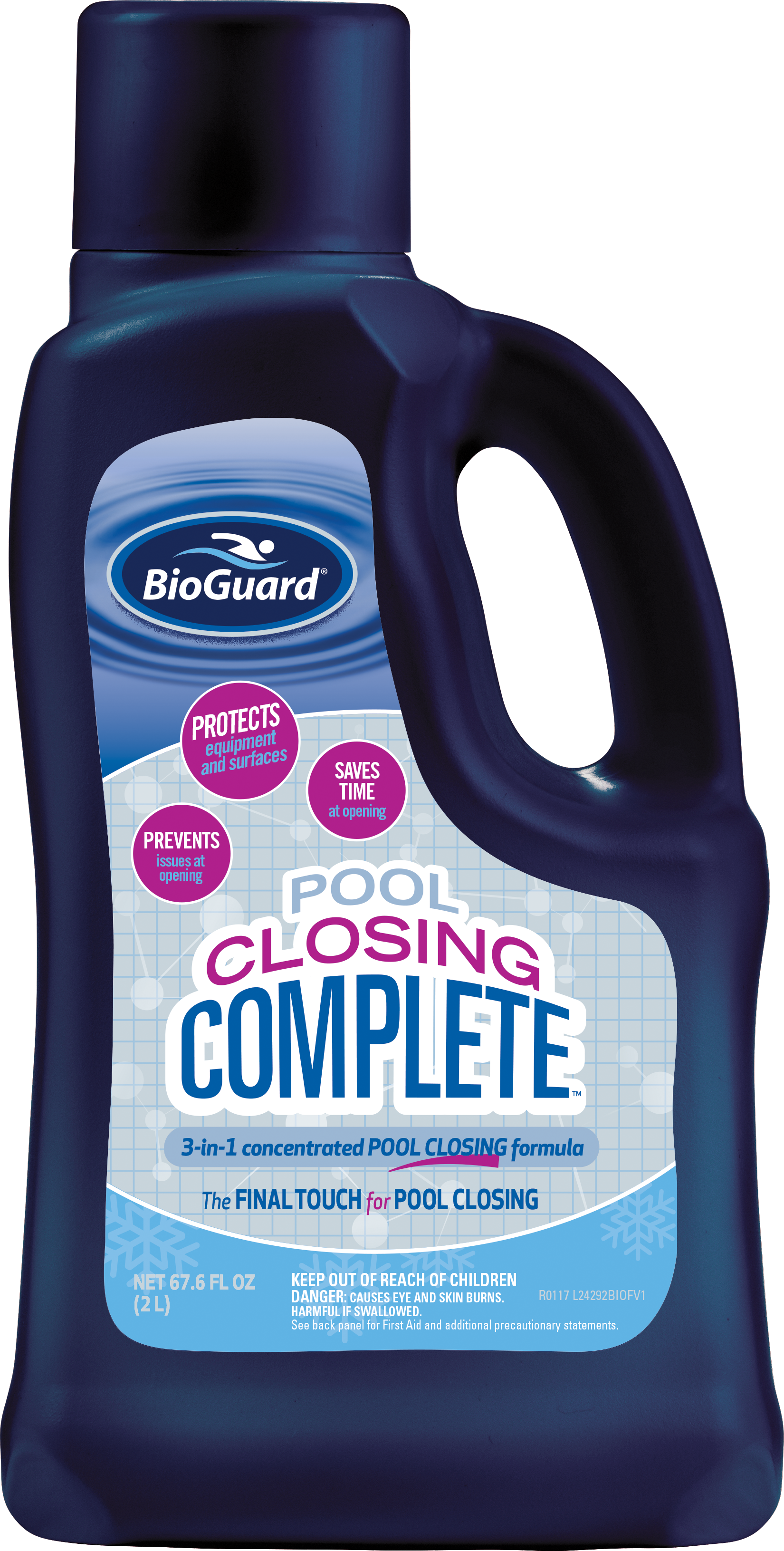 - Pool Closing Complete is a 3-in-1 formula that protects equipment from scale, corrosion, and waterline buildup. BioGuard Pool Closing Complete is the final piece to a perfect pool closing and preparing for a clean and trouble-free pool opening in the spring.