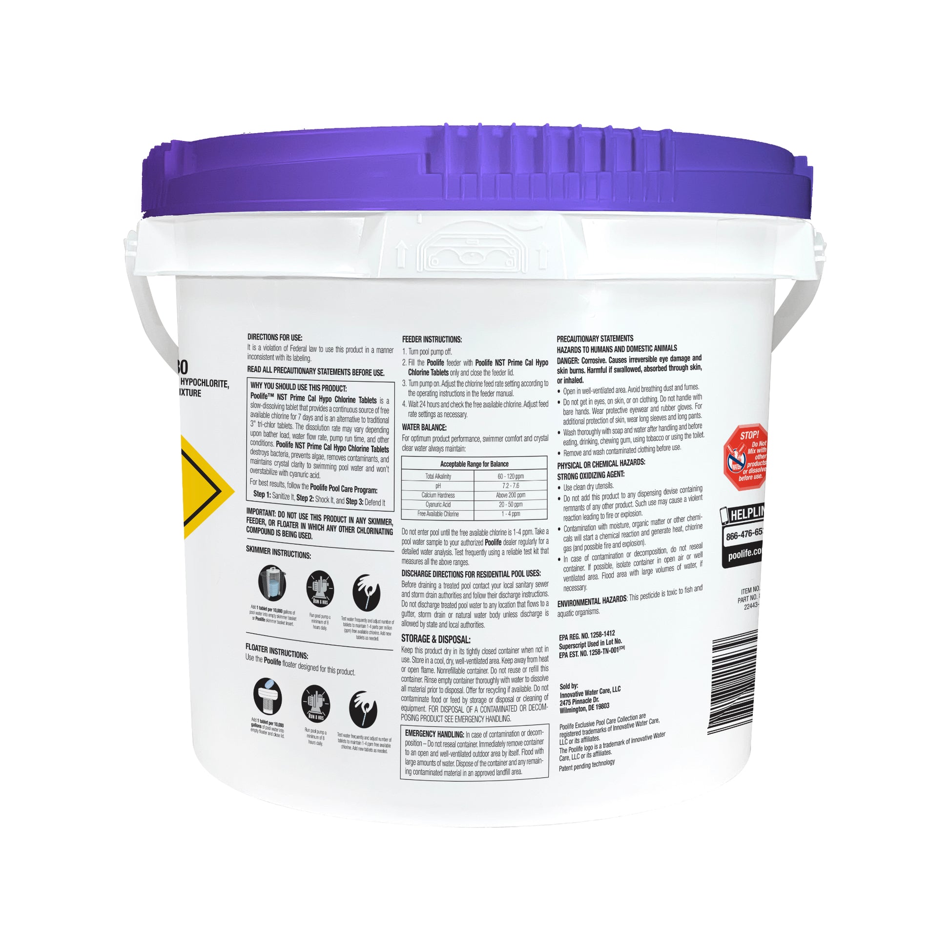 For optimum product performance, swimmer comfort and crystal clear water, always maintain pH from 7.2 to 7.6, total alkalinity from 60 to 120 ppm and calcium hardness above 200 ppm. Test frequently using a reliable test kit that measure all the above ranges. Use Poolife pool care products to make adjustments. Follow label directions for each product. Do not enter pool until free available chlorine residual is 1-4 ppm for each of the below water treatment applications.
