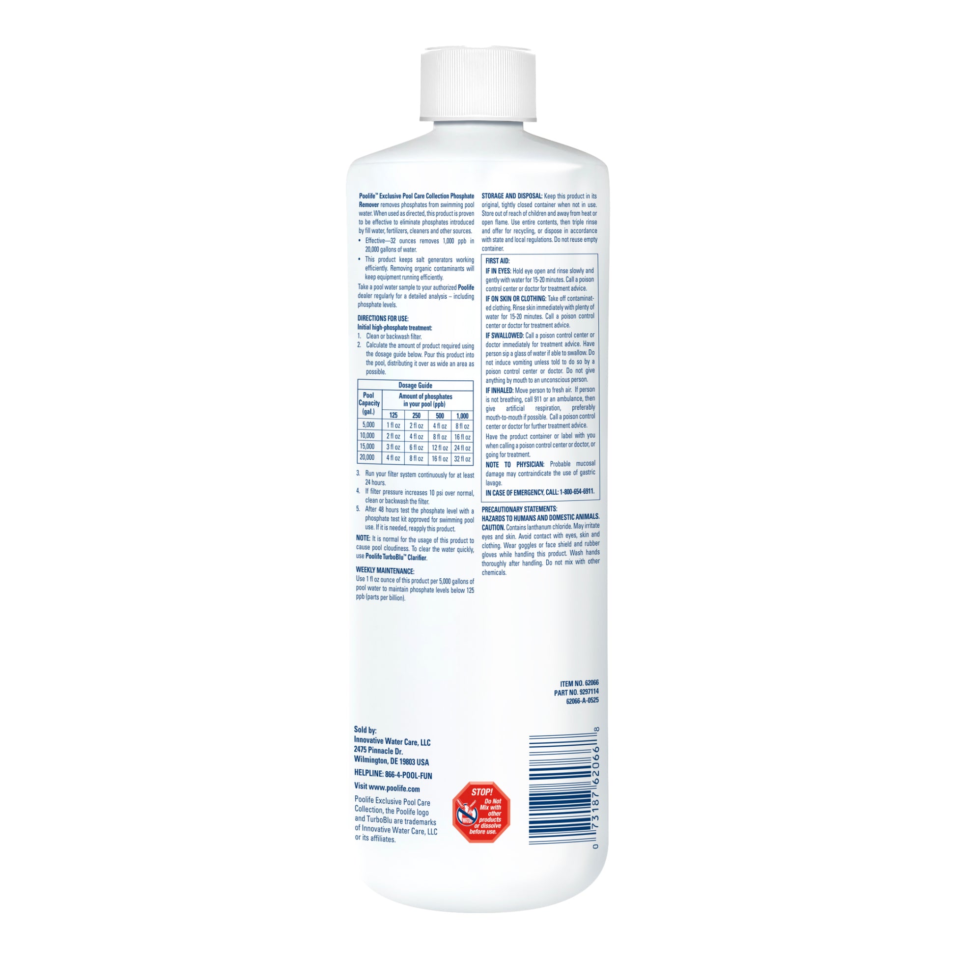 Use 1 ounce of this product per 5,000 gallons of pool water to maintain phosphate levels below 125 ppb.