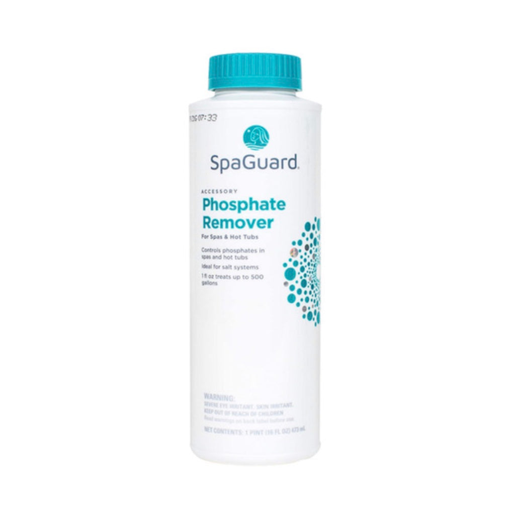 The SpaGuard Phosphate Remover product is an effective liquid formula that will immediately reduce high levels of phosphates. Using this will help spas and hot tubs protect equipment from calcium phosphate scale build ups. It can be used as part of a weekly maintenance treatment. The Phosphate Remover can be used on most pool systems, but it is ideal for use in salt water spa systems.